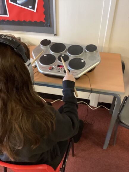 The pupils are coming along really well in the Music option – they are learning songs from artists such as Tom Odell & Megadeath. On instruments such as keyboard, acoustic guitar & base. There’s even talk of forming a band, all guided by Mrs Rouse.