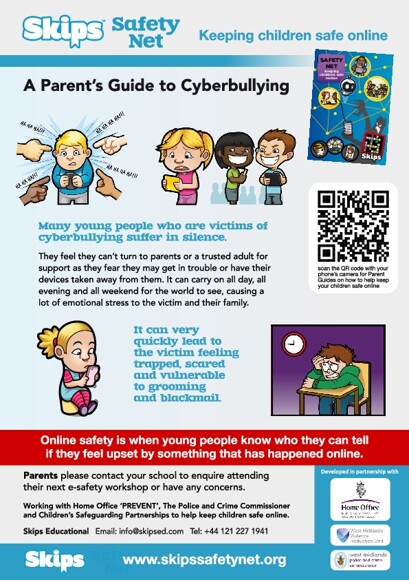 Please see below a parent's guide to cyberbullying from Skips Safety Net.