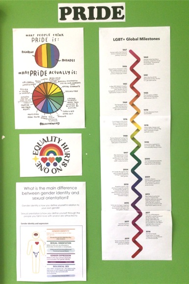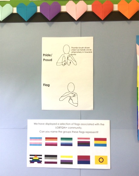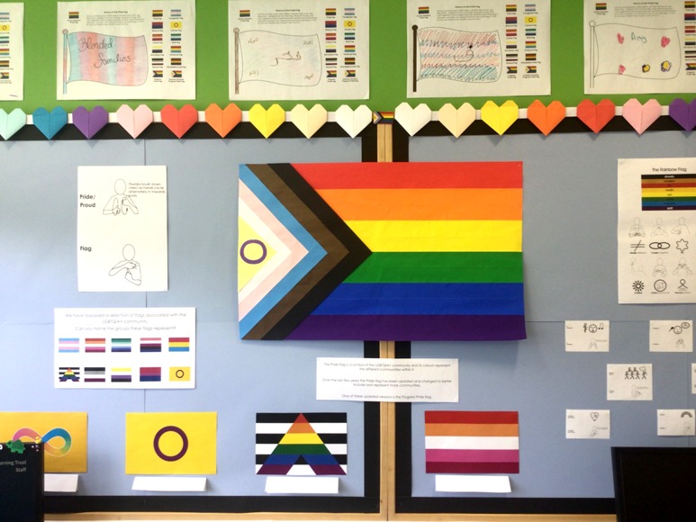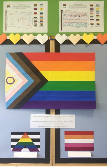 Students have studied the meanings of various flags in PSHE, along with some background information on the Pride movement's evolution over time.