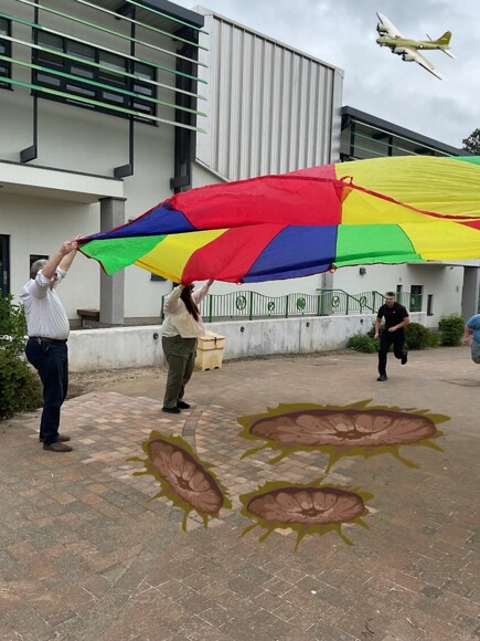 To mark the 80th anniversary of the Allies victory over Nazi Germany, the young people at Ferndene took to The Street and played a selection of games. The equipment used would not have been unfamiliar to the soldiers who had just finished fighting. They used parachutes, ladders and hurdles. Unfortunately, the land mines and barbed wire fell foul of the risk assessment. There was exercise, there was fun, and there was sun. What a way to mark the day.