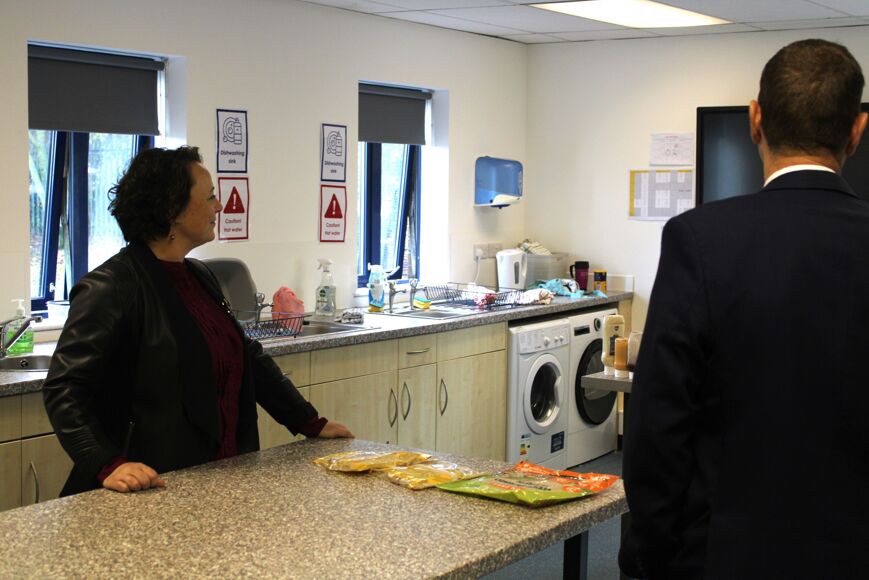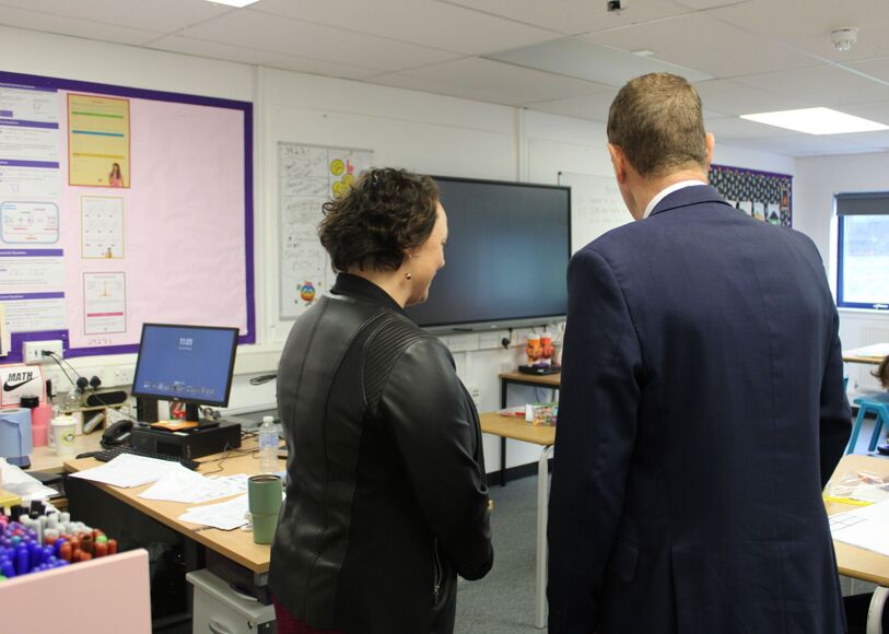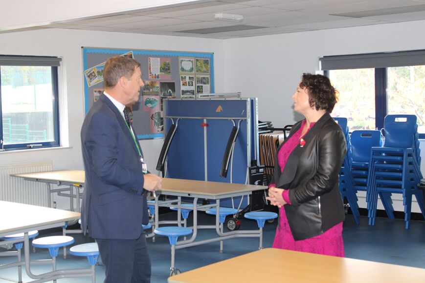 Guided by Headteacher Kevin Stafford, Catherine was given a tour of the building and facilities, including classrooms and specialist support areas.