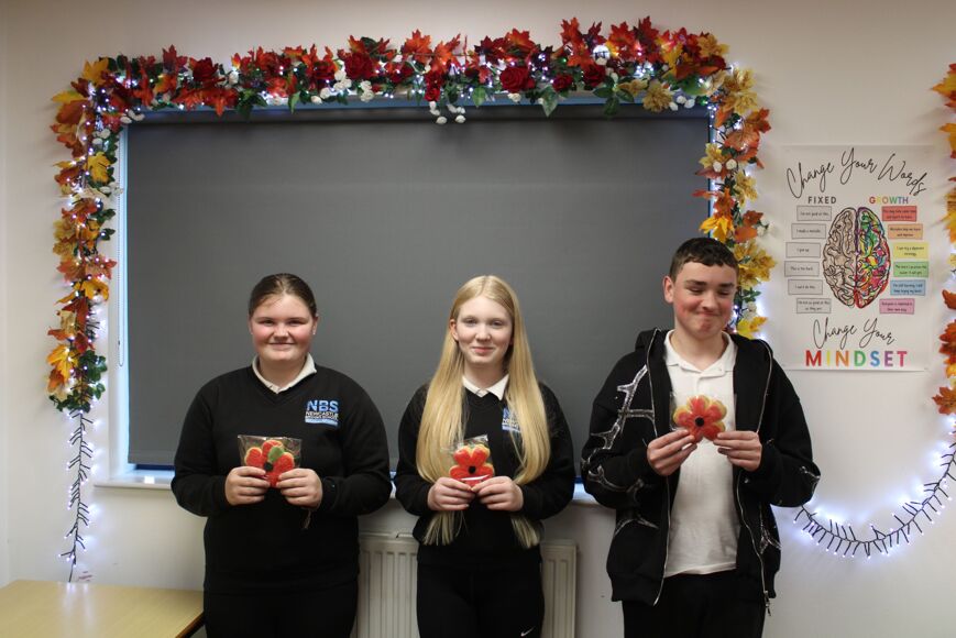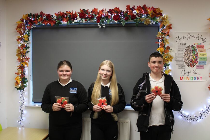 The pupils at Newcastle Bridges School celebrated Remembrance Day by handing out poppy biscuits.