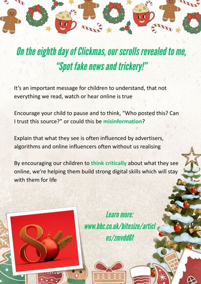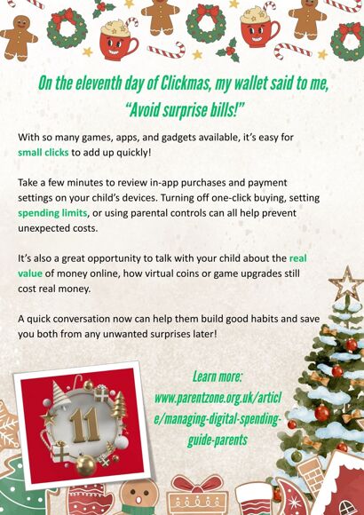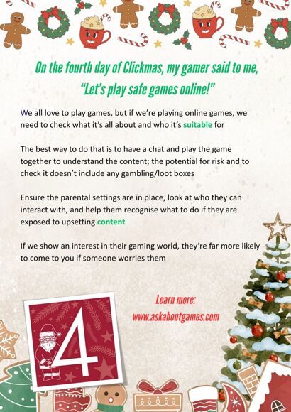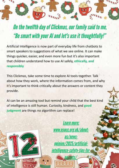 Below is the 12 Days of Clickmas, a festive guide to online safety, supplied by Clennell Education solutions,