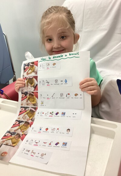 One of the pupils at the Great North Children's Hospital loved decorating their own biscuits so she could write a set of instructions to go with it. Everyone loved tasting them, too.