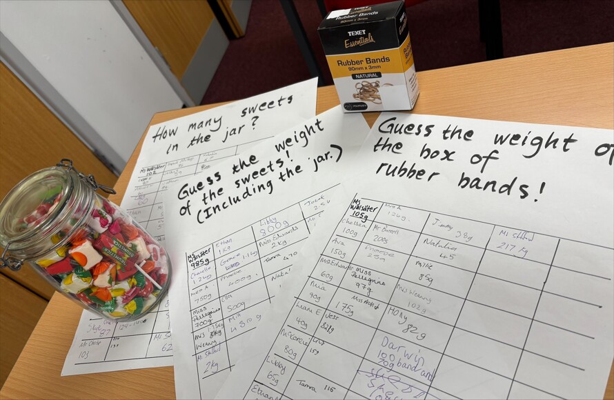 Everyone had a go at guessing the number of sweets in a jar, and at guessing the mass of some items. There was a variety of outfits on show - some of them wore sports tops with numbers on, others had customised their own tops with numbers, and some had decorated their jumpers with stickers. All of the staff and pupils had a great day and raised £46.71 for the NSPCC.