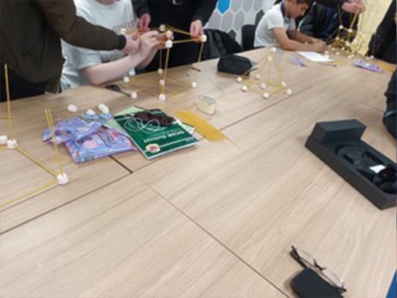 Year 11 pupils took part in a careers session with BAM Construction at NUcastle Foundation. A colleague from BAM showed a presentation to the Year 11 pupils in relation to possible apprenticeships and projects they are involved with. Pupils were given the opportunity to use a virtual reality headset to visit BAM sites and all pupils were involved in a construction task. Pupils were given the task to create a structure using marshmallows and spaghetti and all engaged excellently.