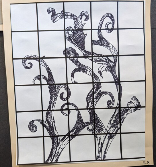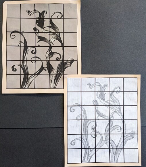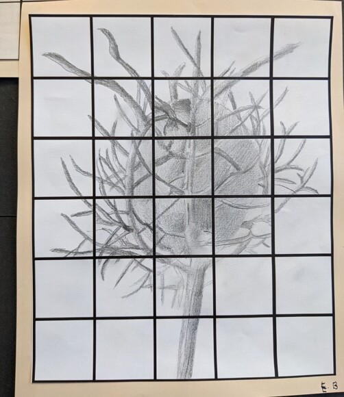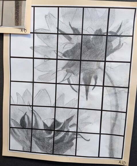Students have been using the grid method to help break down images into manageable sections, and have really been focusing in on detail and tone.