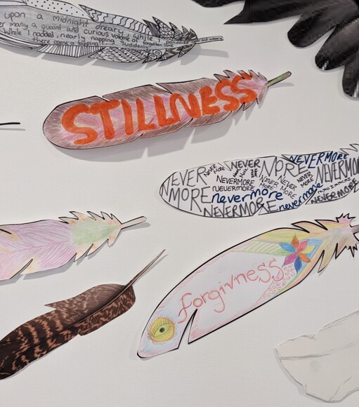 Students took inspiration from this poem to create feathers that explored some of the formal elements of Art, combined with key descriptive features from the poem.