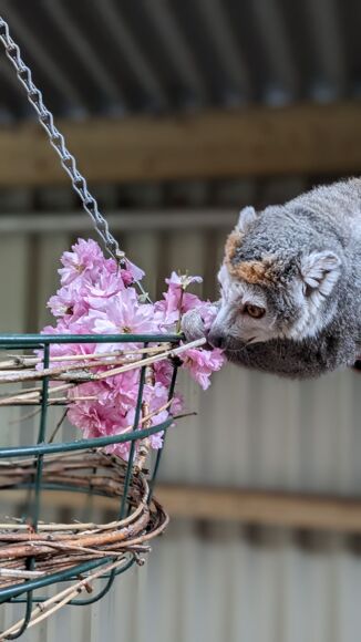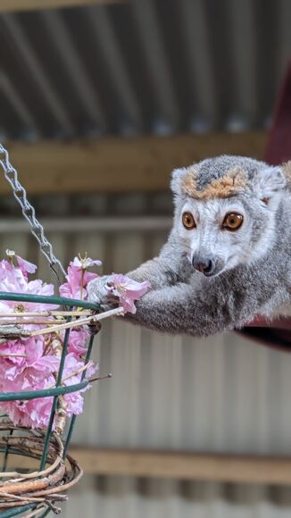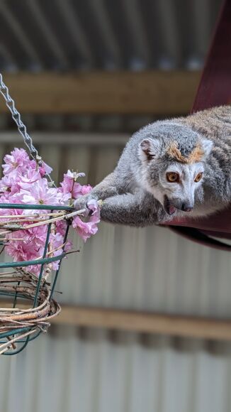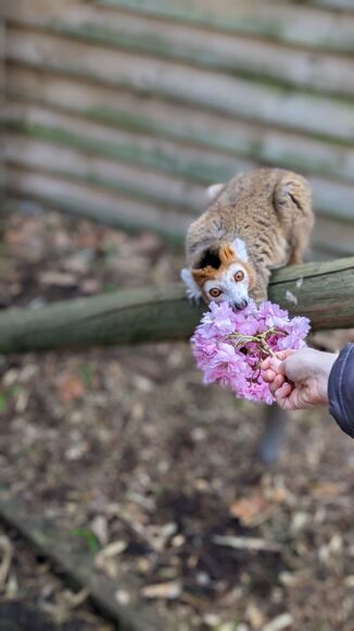 During this week’s visit to Kirkley Hall the weather was glorious! We went out in the sunshine to the willow maze where we learned how to use the loppers and the saw to safely to chop down branches and collected the willow to feed the animals around the zoo. We also collected some blossom as a special treat for the lemurs! Firstly we went to see Darius and Dallas the alpacas and fed them some willow. We then went in to the black and white ruffed lemurs and hid some willow and blossom around the enclosure as enrichment, the 3 lemurs were very timid and hid until the students had left the enclosure to look for the food. We then moved to the ring tailed lemur enclosure, these lemurs were very confident and enjoyed grabbing the branches from our hands before we had a chance to hide it! We gave the goats some of the spare willow on passing which they very much enjoyed. The last enclosure that we went to was crown lemurs. This is home to a male and female which the zoo are hoping will breed. We hid blossom and willow and we got to see inside the enclosure which was big and had lots of heaters to keep the lemurs warm. The lemurs really enjoyed eating the blossom as a special treat!